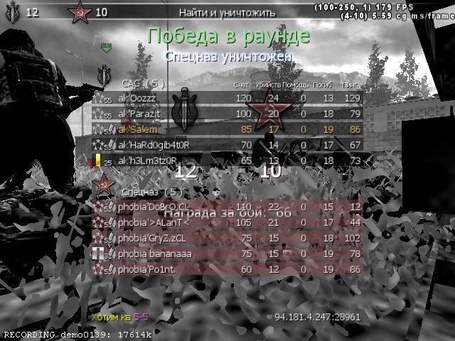 Играли кв с кланом Scat:счет не помню но мы выиграли свою карту как всегда, т.е площадь выиграли и их карту тоже(удар) Играли:Hunter, Роби, Трейн, Олег(с возвращением кстати ;d ), и Тони